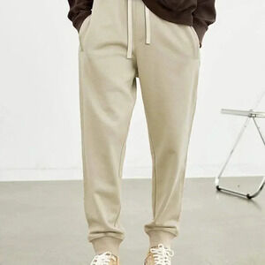 Tan Casual Mens Drawstring Waist Solid Sweatpants