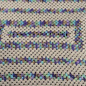 Tan & Mermaid Rainbow 71 X 83 Crochet Blanket Bedspread Love Granny Cottage Core