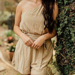 Tan One Shoulder Romper