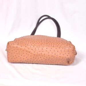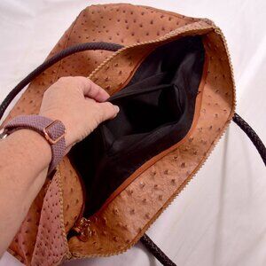 Tan Ostrich Print Faux Leather Tote Bag Large Handbag with Braided Handles