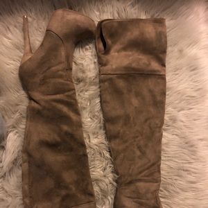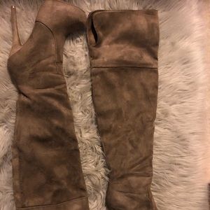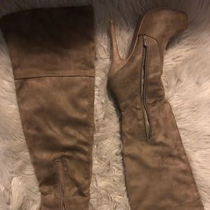 Like new tan over the knee platform heel boots size 6 – only worn once.
