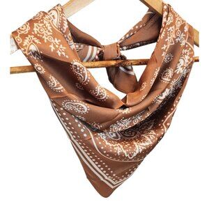 Tan Paisley Square Scarf Wild Rag Bandana Print Satin Neck Head Wrap 27 in
