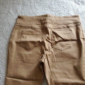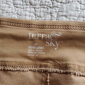 Tan pants with back pockets from Terra & Sky. Front pockets and fastenings are fake. Size is 1X or 16-18 wide, as per the label.