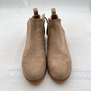 Tan Patchwork Ankle Boots for Women Low Stacked Chunky Heels Round Toe Boot