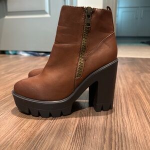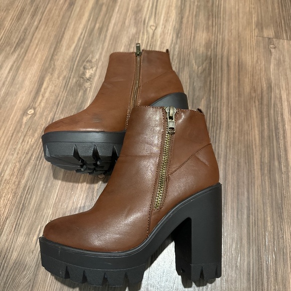 Bamboo brand platform booties, small scuff near the top of left booties
