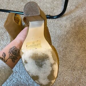 Gently used platform heels. I purchased from a local boutique. Slight scuffing, please see pictures. No box.