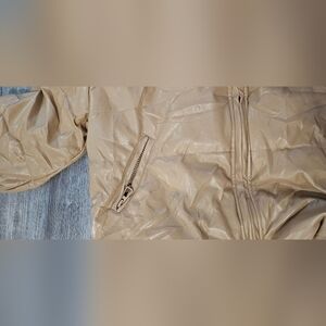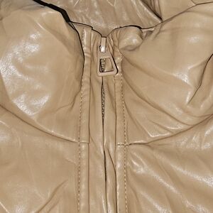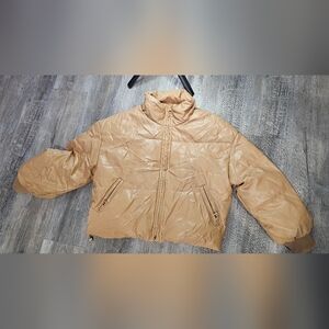 Stylish tan puffer jacket with zip pockets. Perfect for chilly days. L
