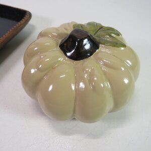 Tan Pumpkin & Embossed Tray Ceramic Fall Autumn Halloween Decor