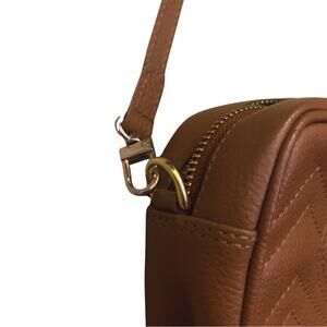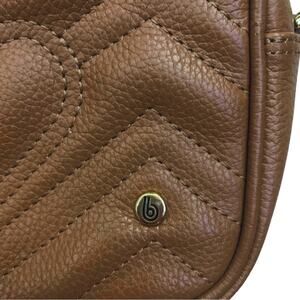 Tan quilted crossbody handbag and belt bag. 100% Colombian leather. Small crossbody bag that can also be worn as a waist bag. Cute heart design. Top zipper closure. Gold hardware. “b” gold logo on the bottom front right side. One pocket inside. Adjustable strap with 5 holes. You can remove straps to use it as a clutch too. It has a folded leather piece on the back (see picture) where you can insert the bag straps to use a belt or insert one of your own belts, so you can wear it as a fanny pack. Belts can be as thick as 1 inch. Casual handbag. New without tags.