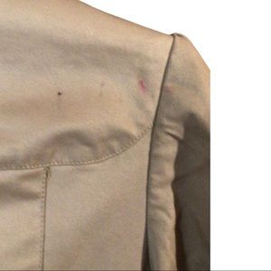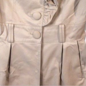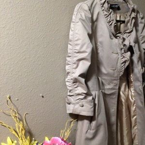 TAN RUFFLES COAT, Buttons down and clip buttons.