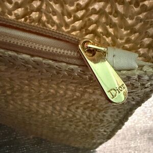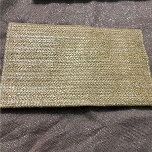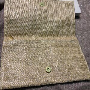 Raffia clutch. Tan color. Snap button closure. Gold tone hardware. Perfect for daily use.