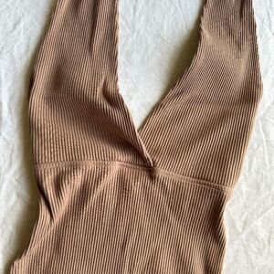 Tan Ribbed Halter Dress