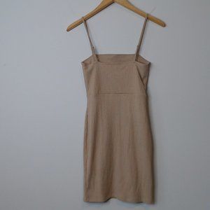 Tight Fit Above the Knee Tan/Ribbed Mini Dress Left Side Slit Adjustable Straps/ Worn once in great condition.
