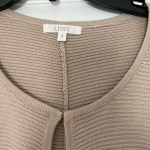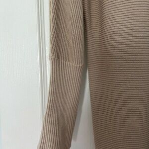 Stylish tan ribbed open cardigan. Perfect for layering. One latch at top. Adorable pattern. Perfect weight too.