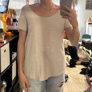 Never been worn, size medium tan ribbed T-Shirt. Perfect for under a flannel or sweater! Very comfortable and cute. Dm me with any questions or for more photos of the item!