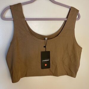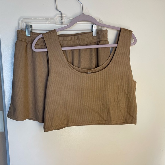 Stylish tan ribbed tank top and short set