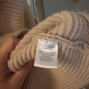 Elegant beige sweater with ribbed texture. Perfect for layering.