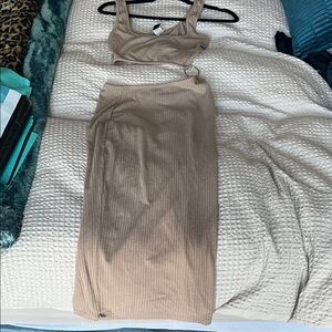Tan Ribbed mid Dress
