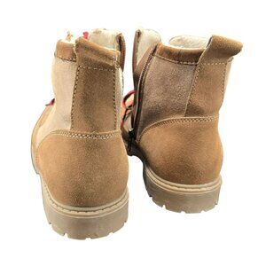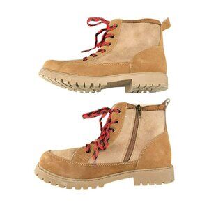 Tan Ridge Womens Lace-Up Ankle Boots Red Laces Side Zippers 7M Faux Suede JJ3906