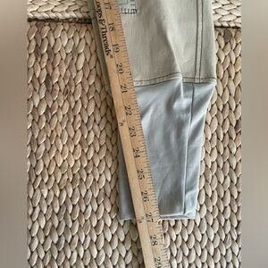 Stylish tan riding pants by equine couture. Features reinforced knee patches. Comfortable and durable design.