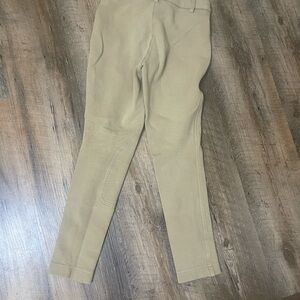 Stylish tan riding pants with reinforced knee patches. Perfect for equestrian activities.