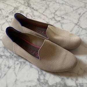 Tan Rothy’s flats. These shoes have been gently worn but are in overall good condition with no rips or stains, bottom soles in good condition as pictured. These shoes run small. I’m usually a 7 and these are 7.5 and fit me well.