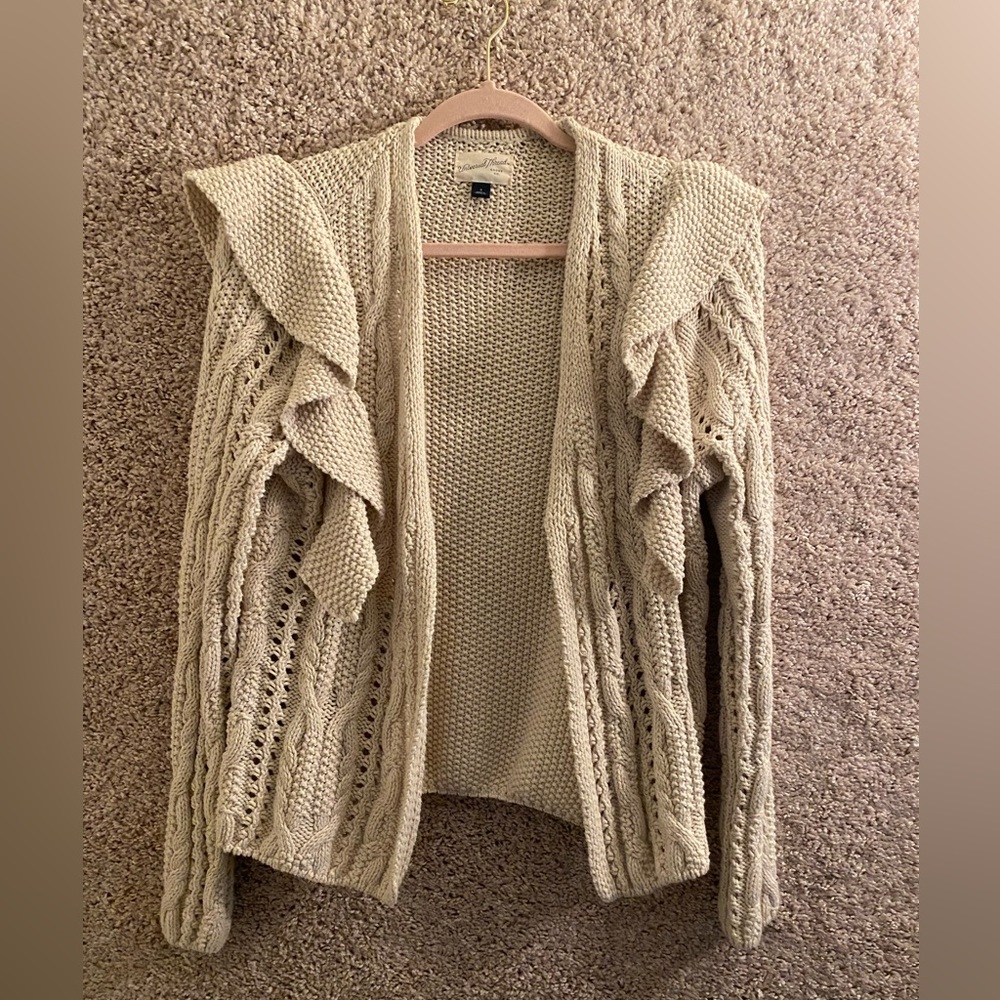 Tan Ruffle Cardigan Sweater