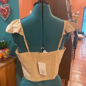Elevate your style with this elegant mustard crop top featuring charming ruffle sleeves. Ideal for both casual outings and festive gatherings.
