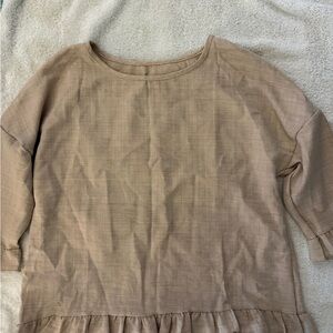 Tan Ruffle Hem Blouse
