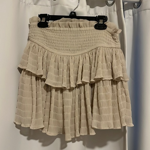 mini skirt that's in super code condition has ruffles and is tan! no liner or built in shorts
