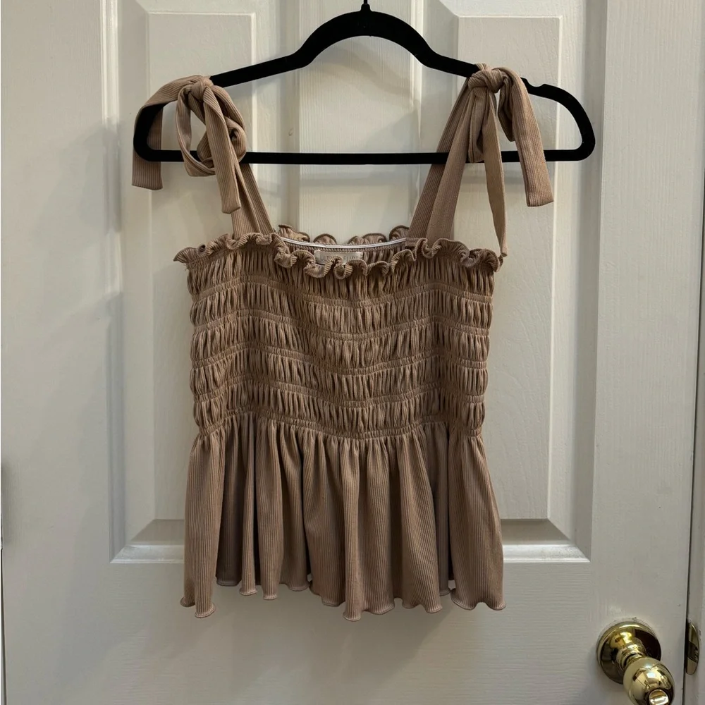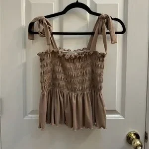 Tan Ruffle Tank Top Size: Medium Brand: Ultra Flirt Color: Tan/ Brown