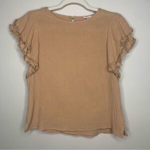Tan Ruffle sleeve blouse Size Small- 100% cotton