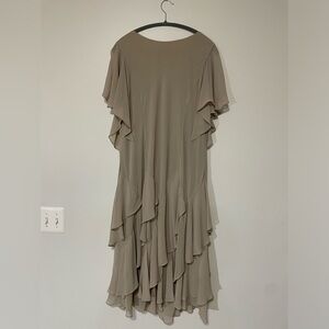 bust 48in waist 60in hips 60in overdress has no stretch slip has some stretch