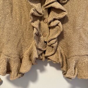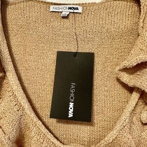 Embrace elegance with this tan blouse from Fashion Nova, featuring a fitted silhouette and charming ruffled details along the front and cuffs. The long sleeves add a touch of sophistication, making it ideal for both casual outings and formal occasions.