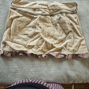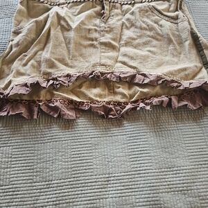 Chic tan skirt with ruffled hem. Perfect for casual outings.
