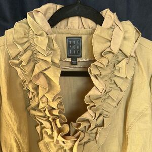 Tan Ruffles Dress Jacket Zip up Front Women’s Size Large Classic