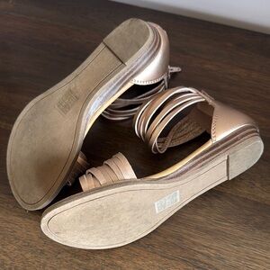 Tan Sandals with Wrap-Around Ankle Strap and Flat Sole