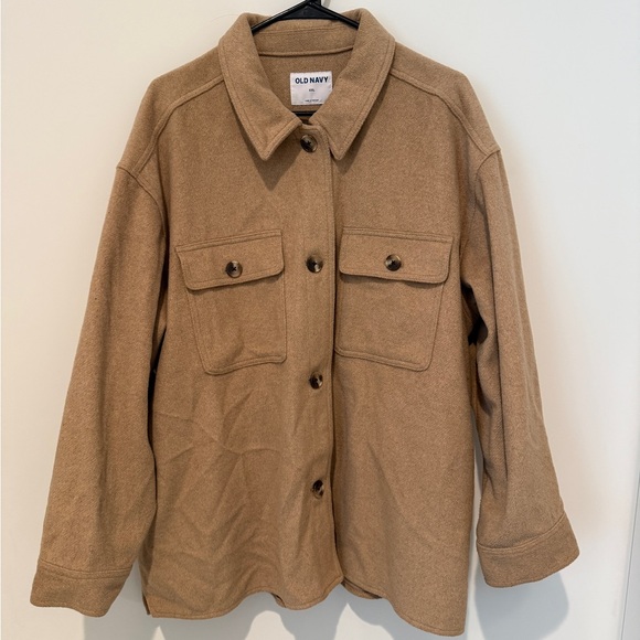 Old navy women’s tan wool shacket with tortoise buttons, XXL