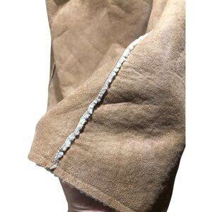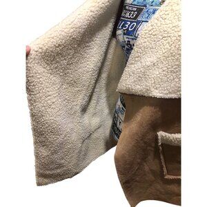 Tan Sherpa Lined Accent Open Front Vest Pockets Warm Cozy Snow Boho Sz L/XL