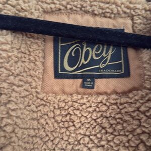 Tan Size Medium Jacket / Lined Inside - Pockets - Excellent Winter Jacket - OBEY with Detachable Hood