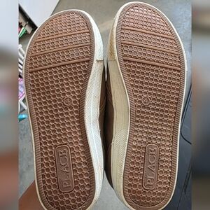 Stylish tan slip-on sneakers. Comfortable and easy to wear. Worn with some scuffs, but still in okay shape!