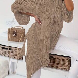 Tan Soft + Plush Knit Sweater - Asymmetrical Hem for Knotting! 2X/16ish - NwoT