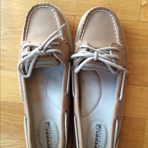 Brand new, never worn tan sperry's! I don't have the box since I thought I was going to keep them but as you can see, they are new and have never been worn. They've been just sitting in my closet now since I have so many others so I decided to try to sell them!