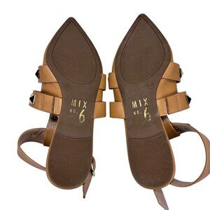 Tan Studded Pointed-Toe Ankle Strap Flats By MIX No.6 Size 7.5 Faux Leather Wome
