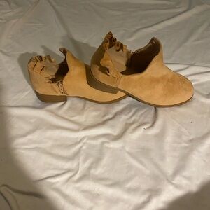 Tan Suede Ankle Booties with Ruffle Detail ZBY Size 4