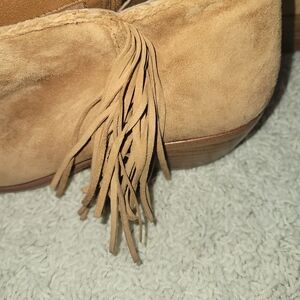 Step out in style with these chic tan suede ankle boots. Perfect for any occasion, these boots offer both comfort and elegance.