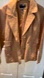 Tan Suede Blazer Jacket Western Style Collared Buckle Accents