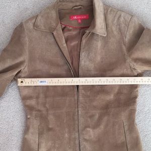 Good used condition. Genuine suede. Lining perfect, no holes or stains. Side exterior pockets for hands. Some signs of wear at sleeve openings. Overall no holes or tears. Zip up front. ~ Comes from Pet Free, Smoke Free Home ~ ALL OFFERS ARE ENCOURAGED, I WILL ALWAYS COUNTER OR ACCEPT.