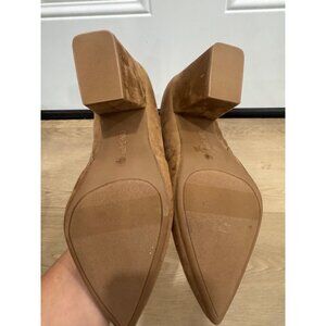 Tan Suede Pointed Toe Ankle Boots With Block Heel 9.5M
