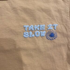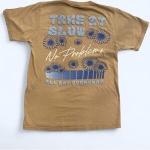 Tan ‘Take It Slow’ Floral Graphic Tee – Chill Vibes